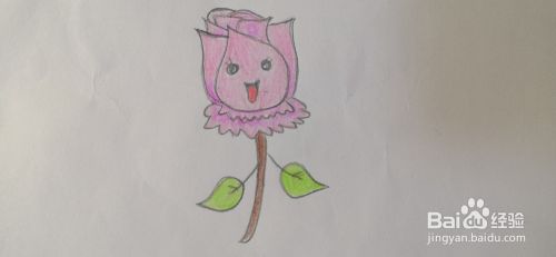 最后用彩铅涂上颜色,这样卡通花朵的简笔画就完成了。
