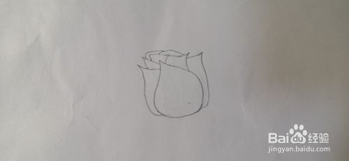 首先画出花朵的最大的一片,还有左侧的花瓣,如下图。