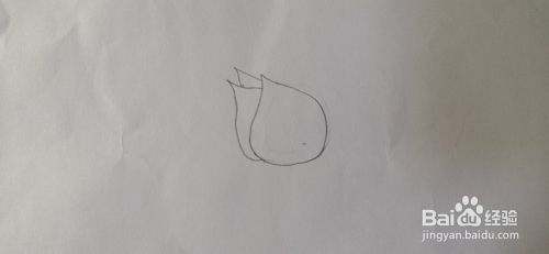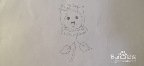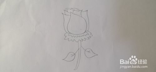 接着画出花朵的花杆,还有两片叶子,如下图所示的样子。