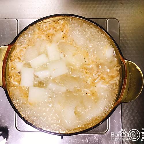 加入姜片、虾米干和少许白胡椒粉,翻炒调味