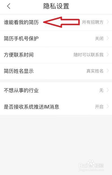 然后点击谁能看我的简历;