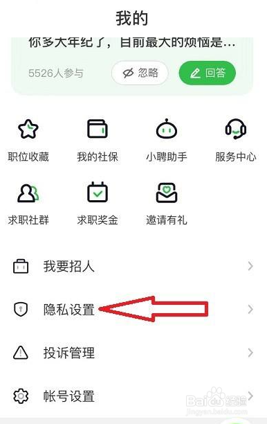 在我的页面里找到隐私设置;