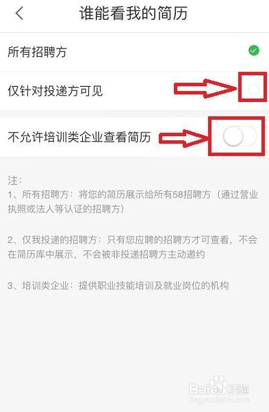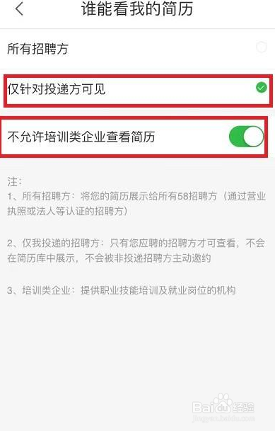 这样设置好后,您的简历只能是你投的招聘公司看见了。