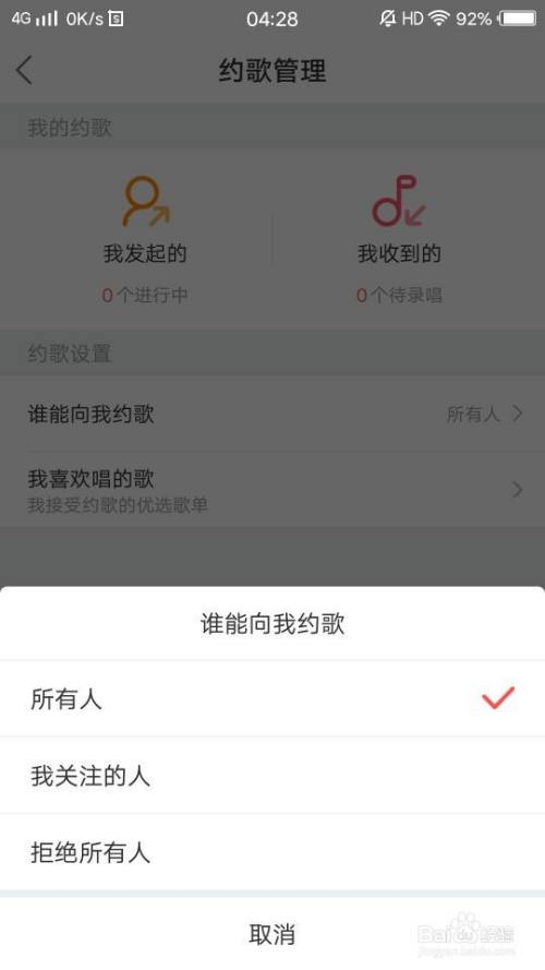 我们在使用酷狗唱唱的时候会经常收到一些莫名的约歌,那么如何根据自己喜好设置约歌权限呢?请看下面的详细步骤。