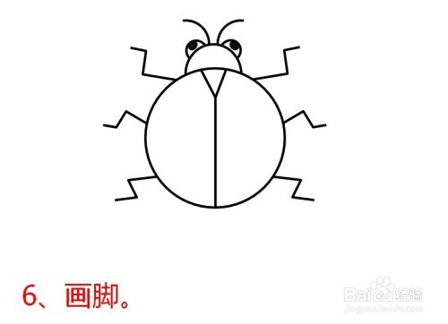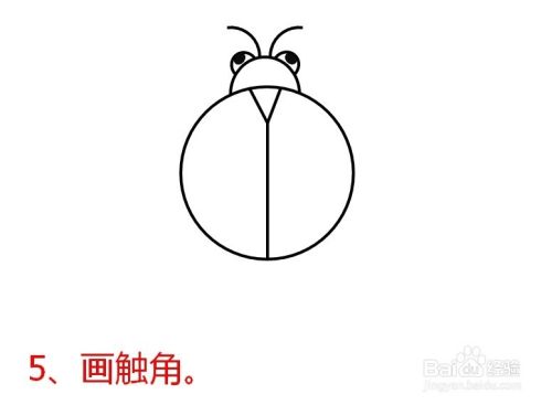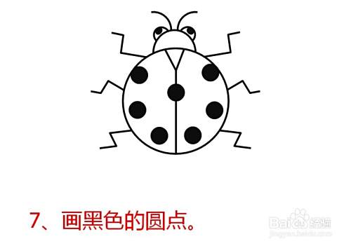 最后画上七星瓢虫的七颗黑色的圆点;一个简单的七星瓢虫简笔画就画好了。