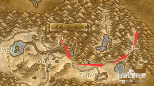 然后到达铁炉堡后,出大门,往地图的右下角走。如图。