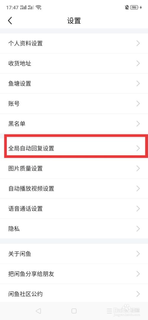 看到设置页面中有一栏【全局自动回复】设置,点击进入。
