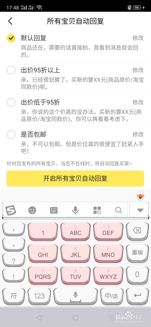 当显示【已开启所有宝贝自动回复】时,就说明已经设置好了。