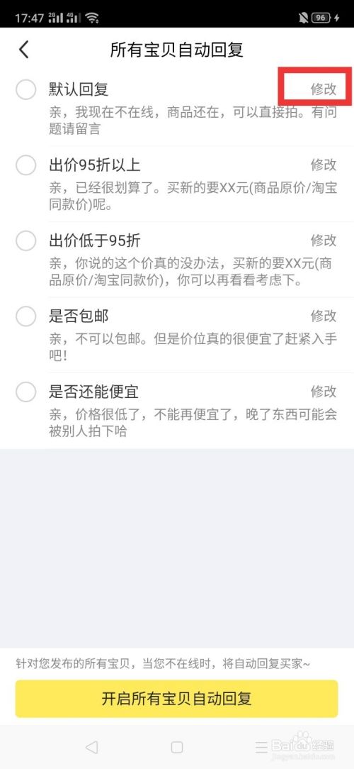 可以看大系统给我们罗列了很多种自动回复,如果你不喜欢,可以点击任意一条修改字样。