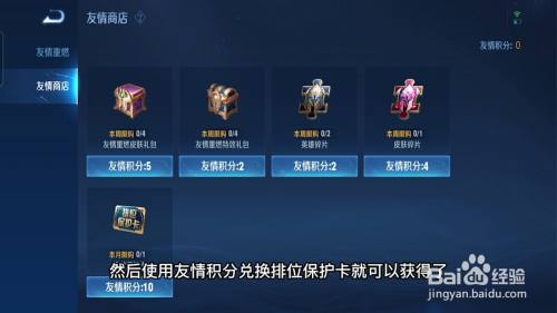 接着点击友情商店,然后使用友情积分兑换排位保护卡就可以获得了。