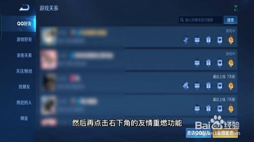 点击右上角的好友图标,然后再点击右下角的友情重燃功能。