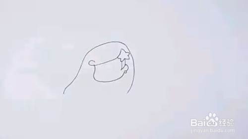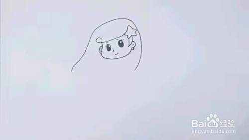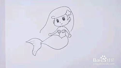 先画出美人鱼漂亮的脸型,头上的星星发饰和披肩长发。见下图