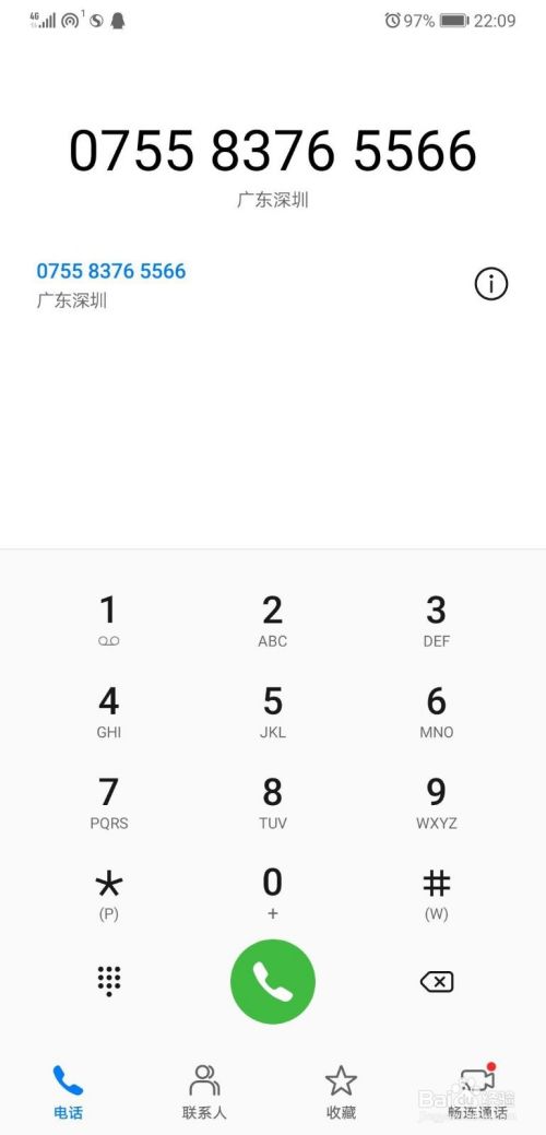 打开手机电话,输入电话0755-83765566,点击拨号键。