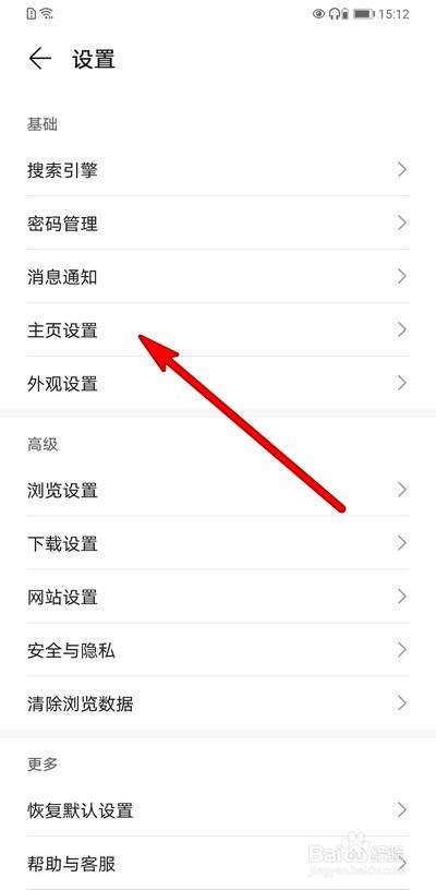 打开之后选择主页设置。