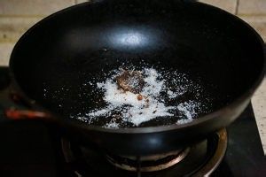 加一小口水,化开白糖和红糖,成较清的糖浆;