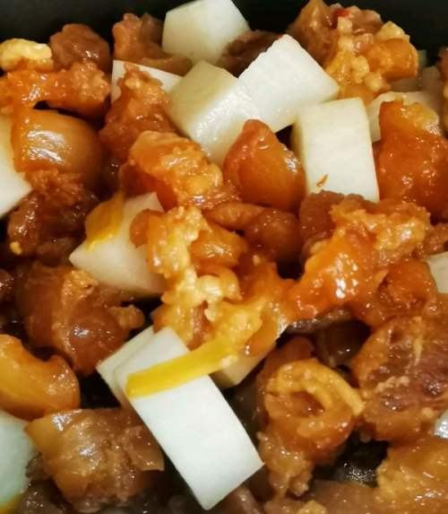 红烧牛筋炖萝卜很适合秋冬季食用,牛蹄筋营养价值高,搭配萝卜一起食用,滋阴养颜,而且还可以顺气。能够很好的延缓女性的衰老,有助于青少年生长发育和强身健体,还能减缓中老年妇女骨质疏松的速度。牛蹄筋中含有丰富的蛋白质和胶质,便于被身体吸收利用,炖得软软糯糯的,味道好,营养高,同志们,赶紧炖起来补起来吧!