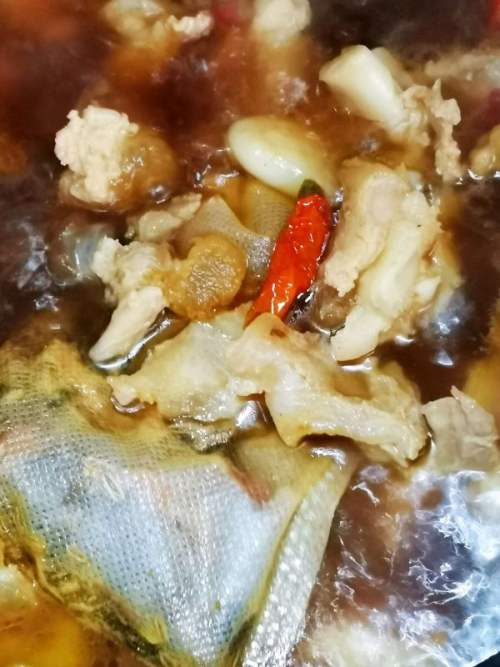 9倒入炖了三个小时的牛蹄筋里面,大火烧开转中小火继续炖半个小时。