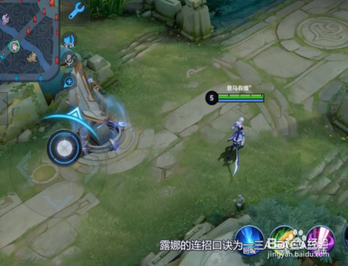 进入游戏选择露娜这个英雄。露娜的连招口诀为一三A二A三A三。把一技能放到敌人身上标记敌人再放大招。再A敌方一下叠加被动。再放二技能控制并标记敌人,并A对方一下。最后完成连招。