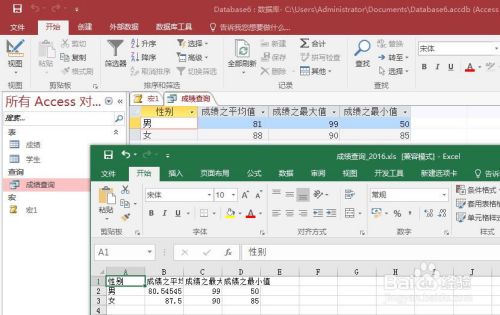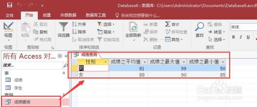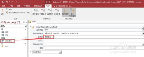 我们看一个例子:假设我们有一个查询(成绩查询),现在我们要把这个查询结果导出到Excel中,用Access自带的宏怎么实现呢