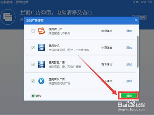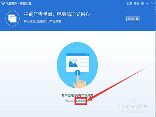 然后我们点击“手动添加”打开管家的拦截广告的功能。