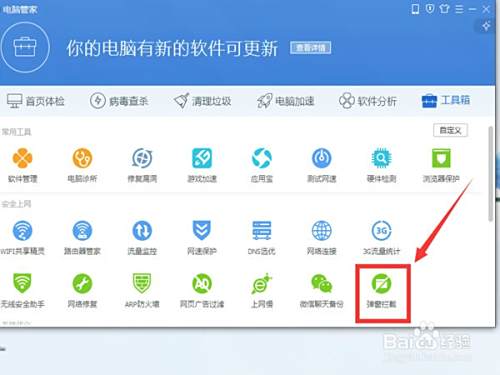 在工具箱里找到“弹窗拦截”选项并点击进去。