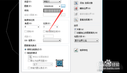 3.在图形区域内点击一下,选中填充区域,回到这个窗口,在里面点击图案后面的按钮