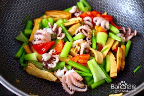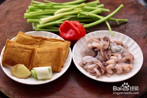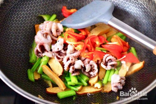 用焯过芹菜的水,加入料酒,直接把八爪鱼进行焯水30秒即可捞出。
