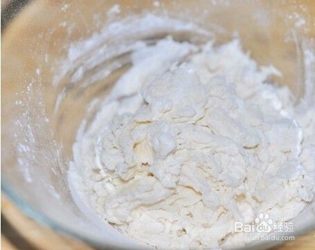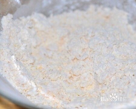 再加入白糖、面粉。搅拌成絮状