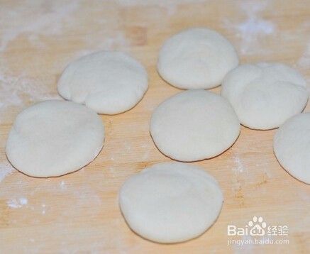 取一块白面团揉成一个小圆球,压扁,擀成面皮