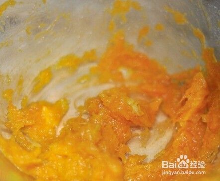 南瓜泥放入盆里
