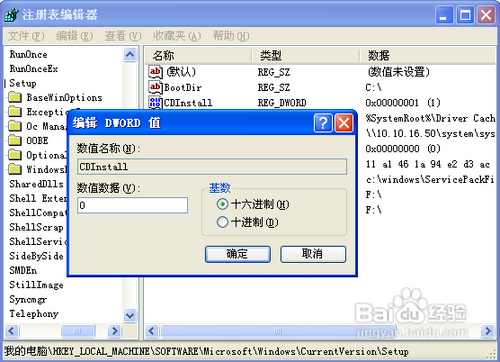 然后双击右边的“CDInstall”,将“CDInstall”键值数据修改为“0”: