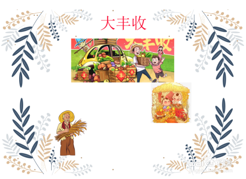 首先在手抄报的正上方写出“大丰收”字样,表达手抄报的主题。