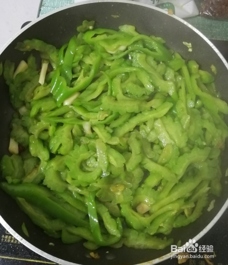 再放入苦瓜用大火爆炒一分钟,放入适量生抽炒均匀即可盛起来。