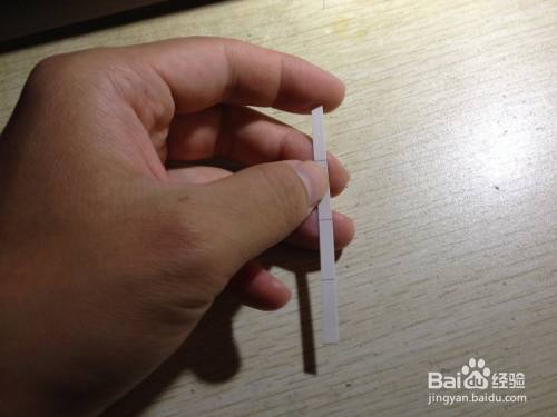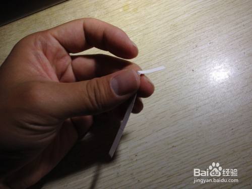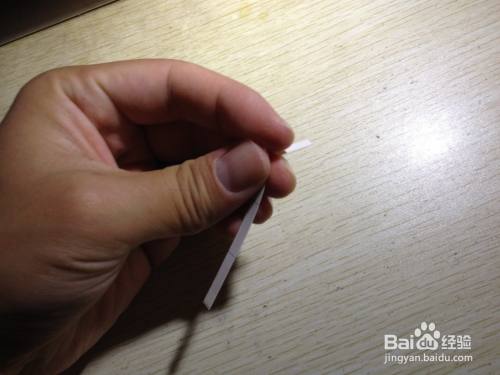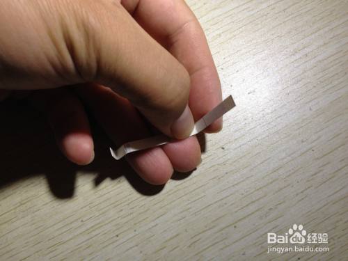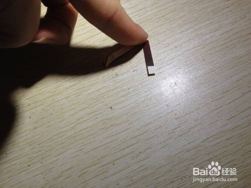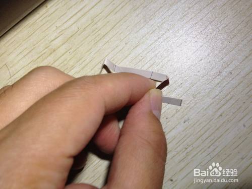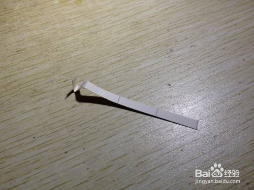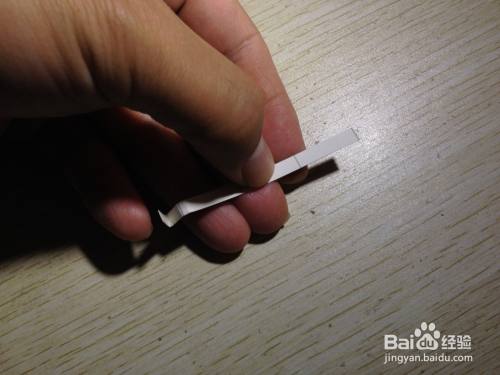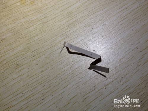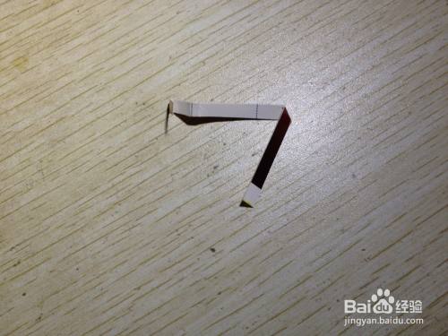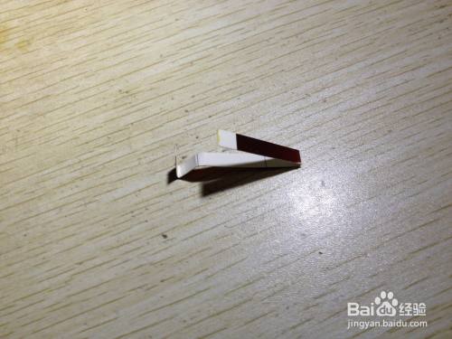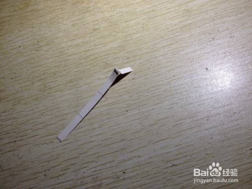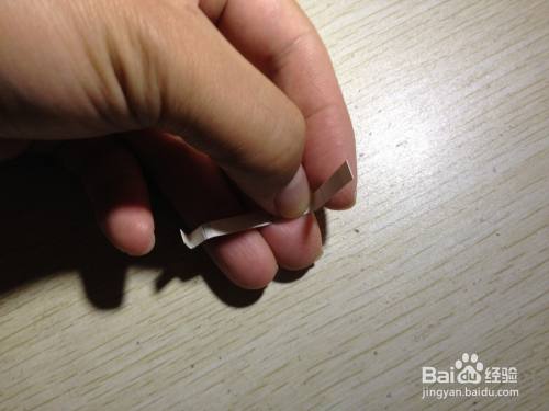 第二步,把剩下的细长的长方形选择大约一半向内折,之后把这一半向左侧斜着掰,用手压实,直到跟原来的细长的长方形有倾斜角度为止,之后把这斜着的部分选择一半向着相反的反向折,直到有倾斜角度为止,这样折好的造型在桌面上就有了支撑手机的作用了,简易的手机的支架就做好了,具体操作如下图。