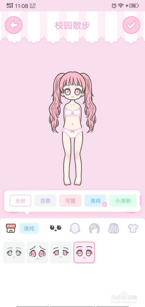 2、将类型定性为清纯,选择一双清纯的大眼睛。