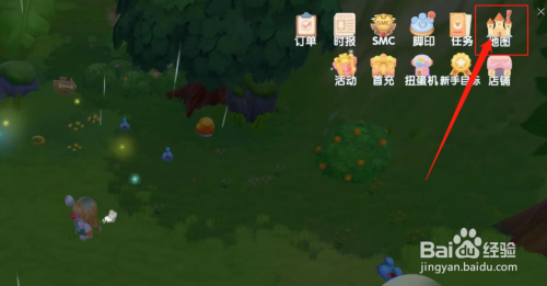 打开摩尔庄园进入游戏主页面后点击右上方地图。