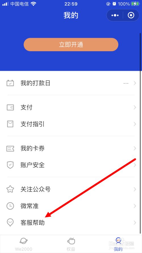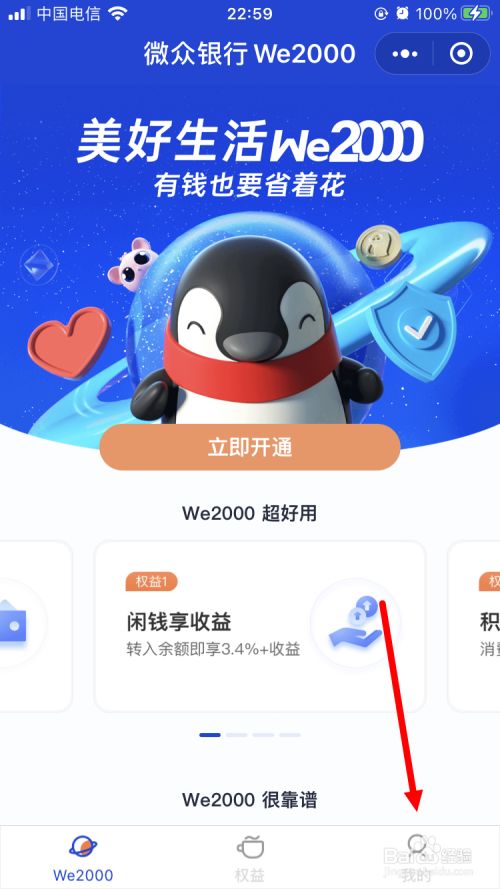 首先在微信上打开微信微众银行we2000小程序,点击【我的】。