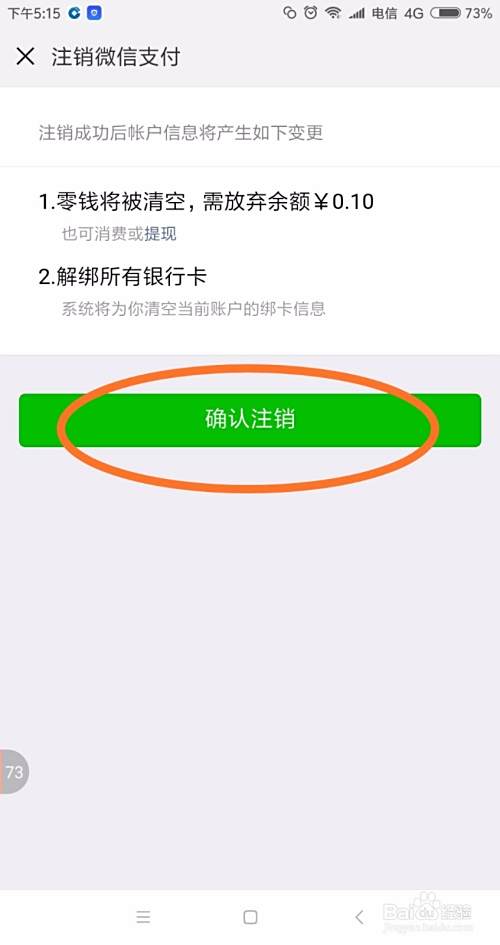 在注销微信支付页面中,认真看清账户的变更信息,确认无误后,点击“确认注销”按钮。
