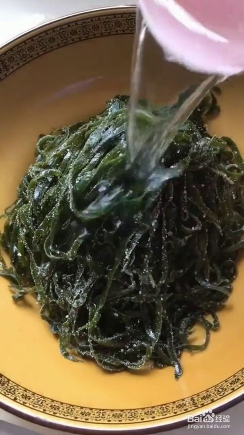 我们将海带丝洗净,锅中烧水,水开下入海带丝,焯烫两分钟捞出过凉水