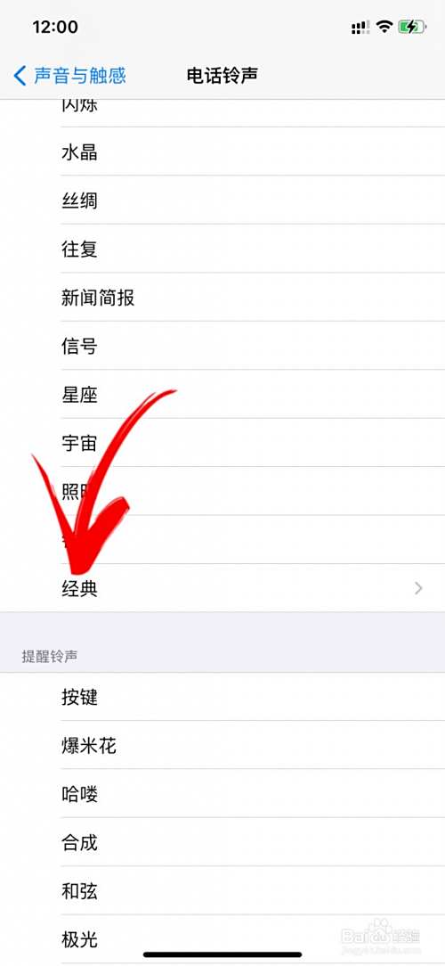 还可以点击下方的经典选项,试听找到喜欢的电话铃声。