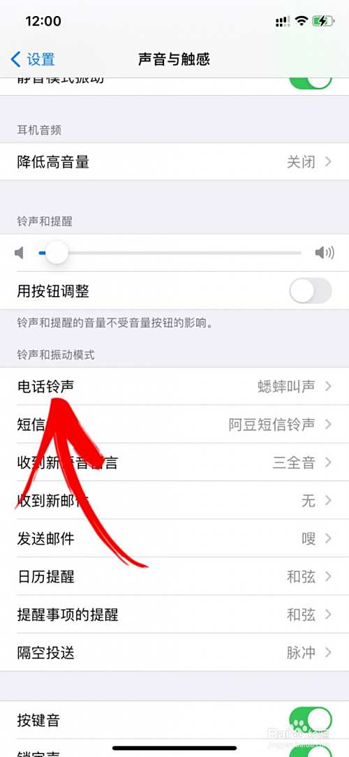 在铃声和振动模式下,点击打开电话铃声。