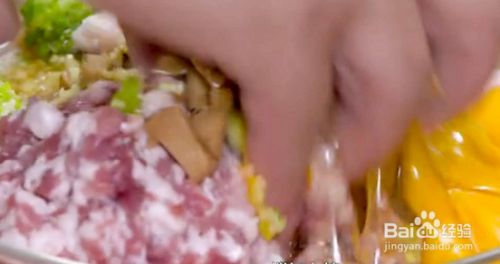 将鲍鱼丁、葱姜末、食盐、糖、生抽、白胡椒粉、水生粉、加入肉泥中。