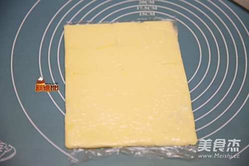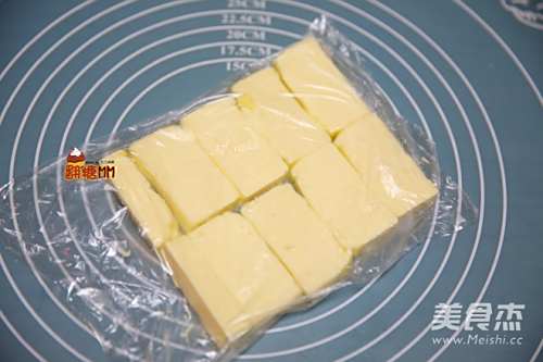 4将70克裹入用黄油切成片,整齐的码入保鲜袋中。