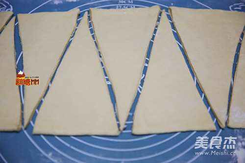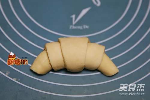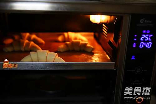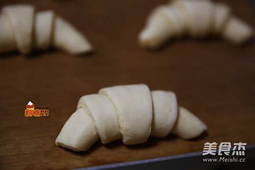 24所有的牛角包卷好,放在烤盘上,每个面包都要留一些间距