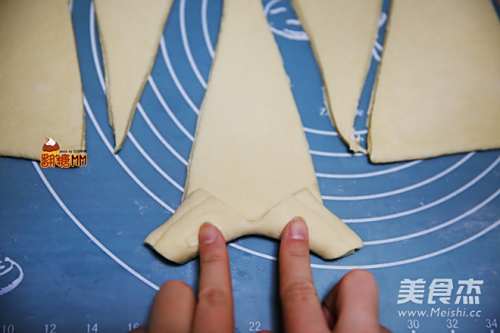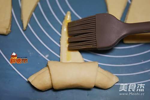 22继续翻卷,直至到顶部,在小尖处刷少许蛋液.