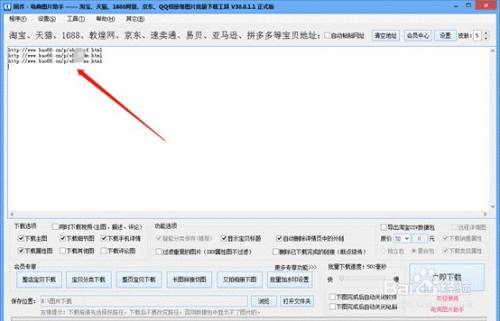 然后把网站里保存的宝贝地址,一键复制到软件主界面的文本框中。