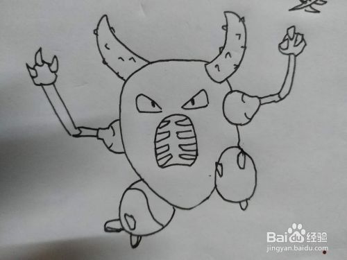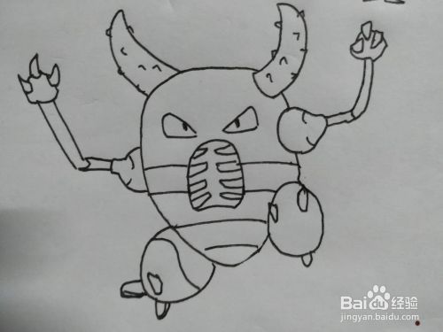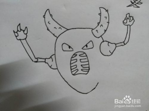 然后我们画上凯罗斯锯齿状的牙齿,画上双手,比较细长,手上有尖爪;