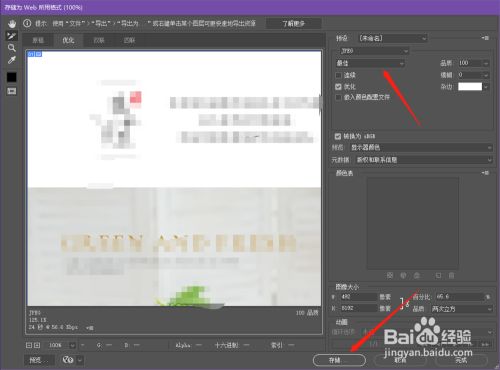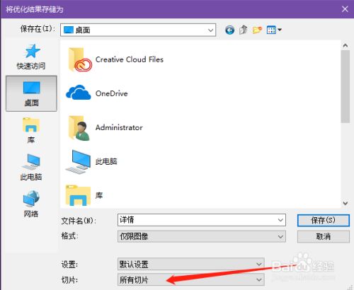 最后,我们将导出的图片格式设置为jpg并最佳,最后点击下方的【存储】按钮,并将保存文件选为【所有切片】保存到电脑指定位置