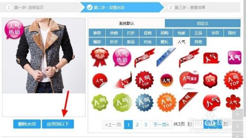 点击创建主图水印。第一步我们需要需要选中所要添加水印的宝贝。只需在主图上点击一下即可