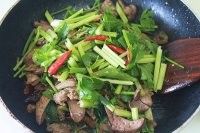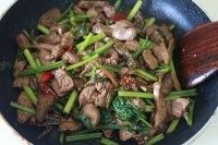 放入焯好的鸡肝,大火翻炒,倒入酱油、胡椒粉。